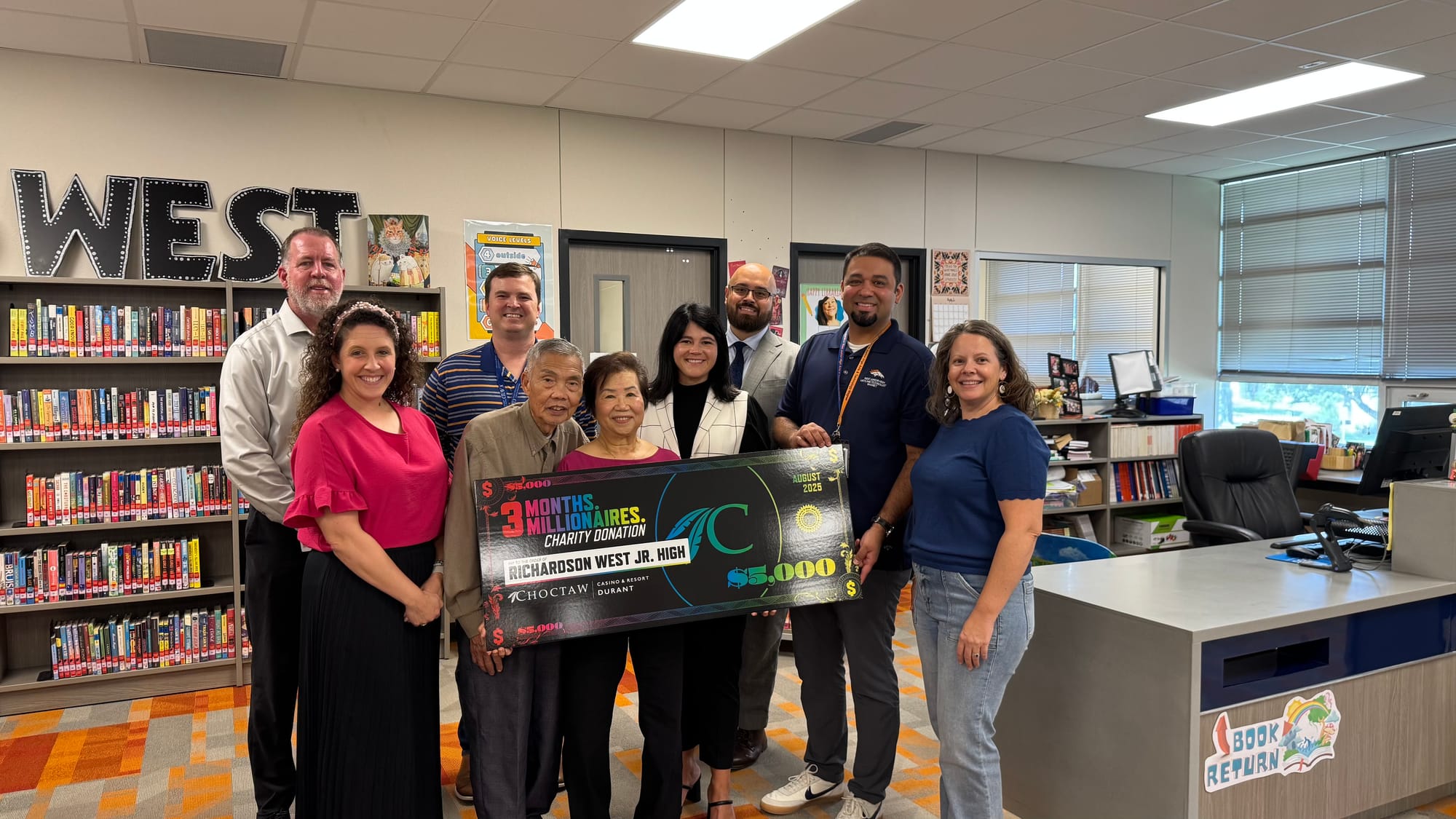 “We are excited to see our first charitable donation make a positive impact for hundreds of students attending Richardson Heights Elementary and Richardson West Jr. High,” said Kaley Lehew, regional marketing director of Choctaw Casino & Resort – Durant. “This is our first $10,000 ‘3 Months. 3 Millionaires.’ charitable donation to present and look forward to making an additional $20,000 impact on more lives this summer.”