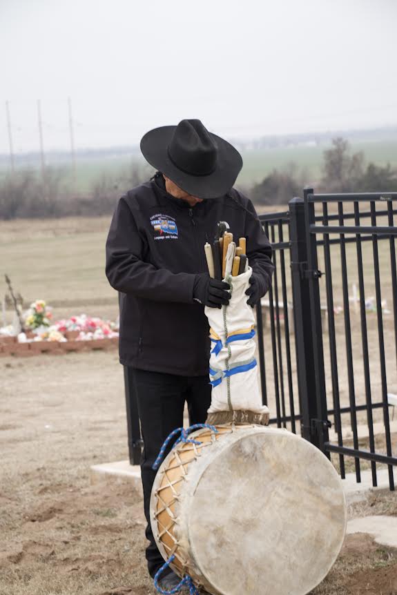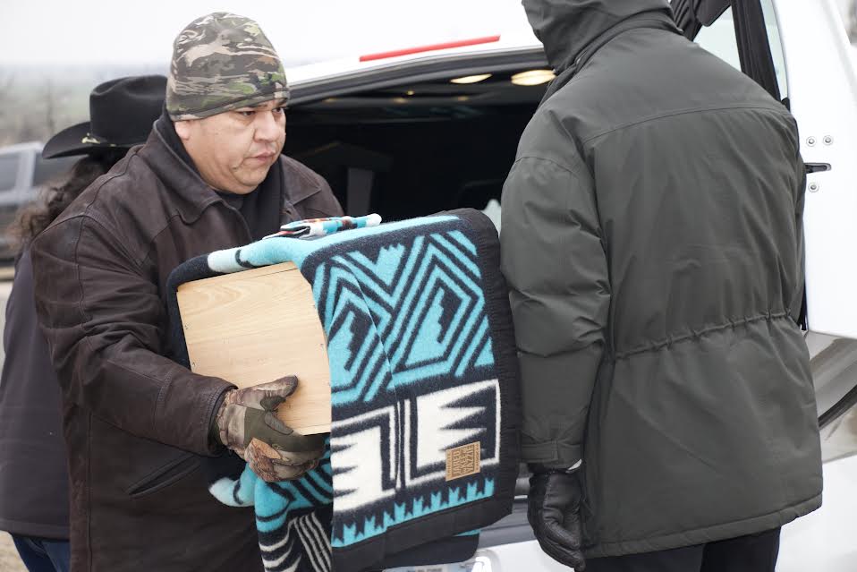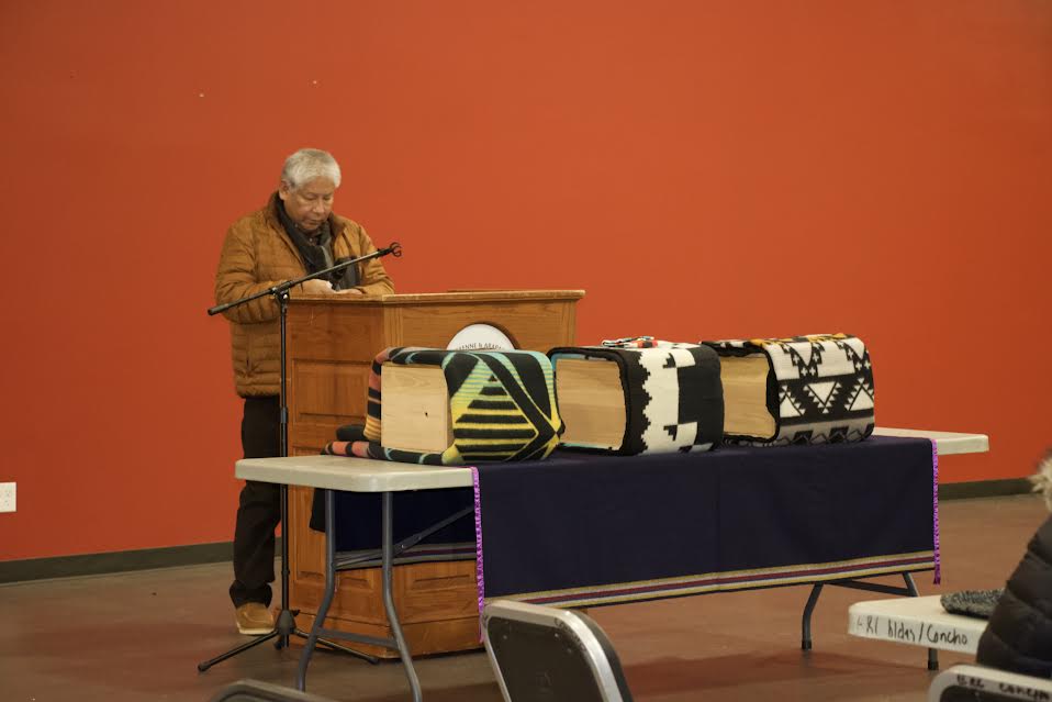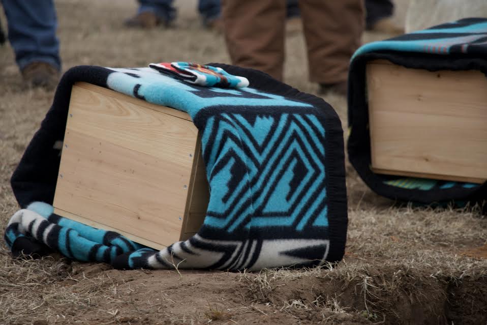 I want to thank the Burial Program for donating the blankets, the Mennonites for constructing the boxes, the University of Denver for their strong partnership and consultation, and thank you to Huber Benson Funeral Home for donating the use of the hearse for the proper escort to the tribal cemetery, and for our singers here,”