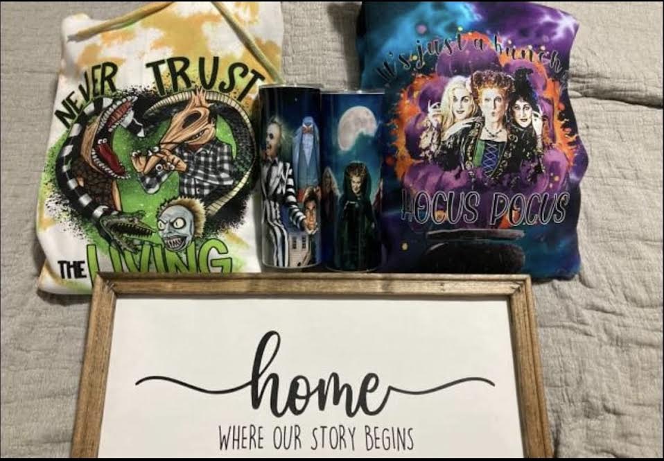 “One year ago this started out as just a hobby, something we could do in our free time. Recently we created some shirts for a few mothers with their son’s football picture, team name and number, watching these moms fall in love with a memento they can keep until their child grows up is why we do this. We want to continue to create products that our customers fall in love with,” Powell said.