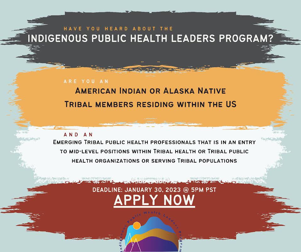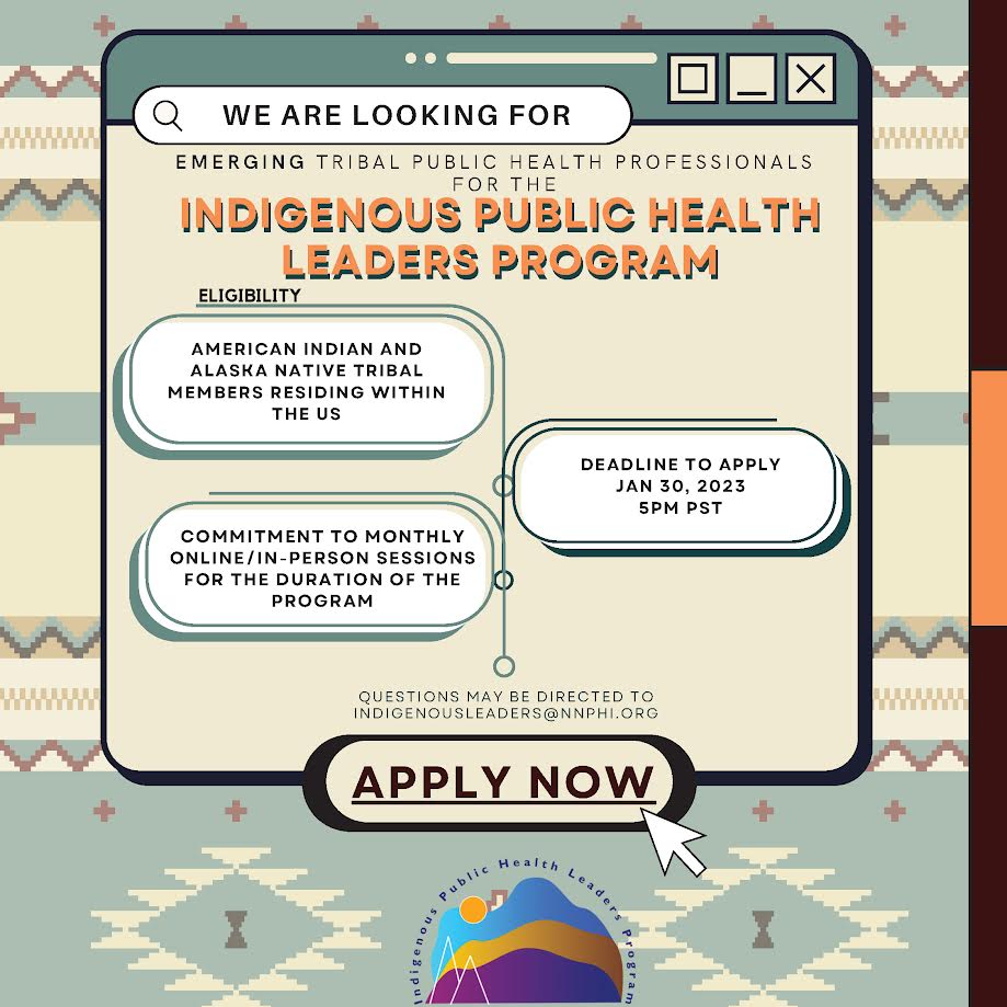 - Interested individuals may apply: Indigenous Public Health Leaders Cohort 2 Application. Questions may be directed to indigenousleaders@nnphi.org
