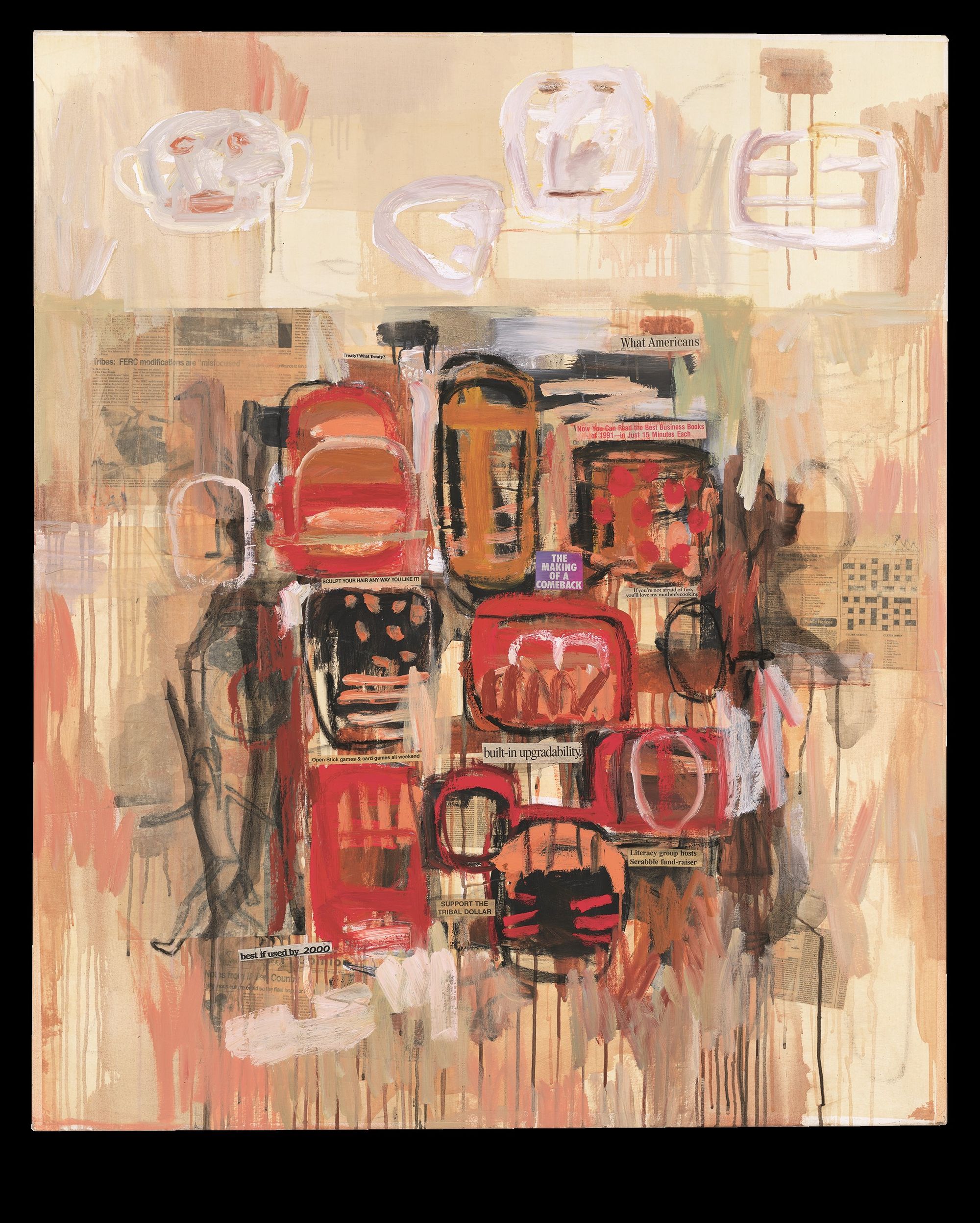 Smith engages with modern and contemporary modes of artmaking, from an idiosyncratic adoption of abstraction to American Pop Art to Neo-Expressionism. She reimagines these artistic traditions with concepts rooted in her own cultural practice to examine contemporary life in America and interpret it through Native ideology.