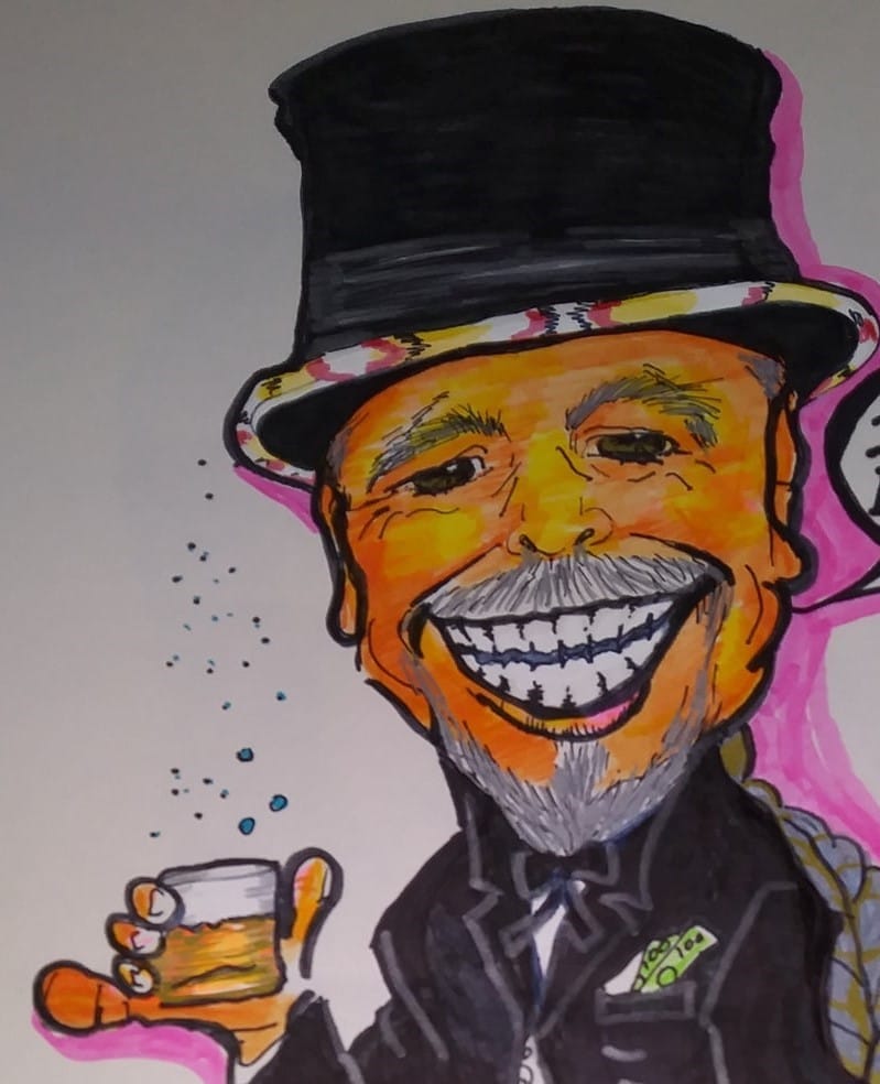 Harjo removes a fat stub of a cigar hanging out the side of his mouth. He wipes his sweaty bald head with a bar towel. He then sticks his big chiefy nose into the damp towel and let’s fly with a huge sneeze. It causes the cheap, dingy light fixture above to rattle.