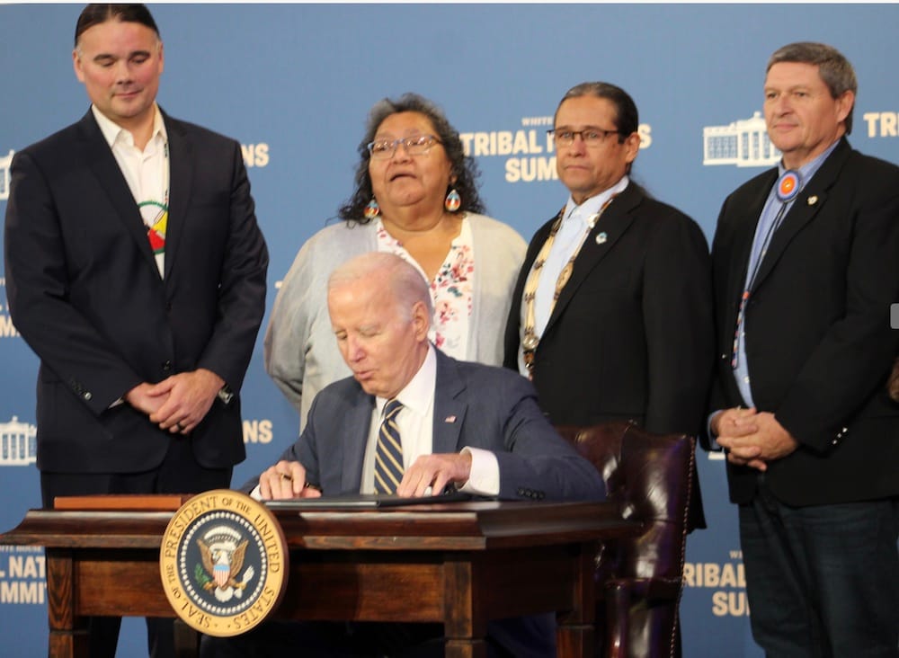 “Today, Tribal Nations still face many barriers to fully exercise their inherent sovereignty, especially in federal funding programs. Far too many of the federal funding and support programs that Tribes rely on are difficult to access, have overly burdensome federal reporting requirements, have unnecessary limitations, or impose requirements on Tribes that drain Tribal resources and undermine their ability to make their own decisions about where and how to meet the needs of their communities,” the executive order stated.
